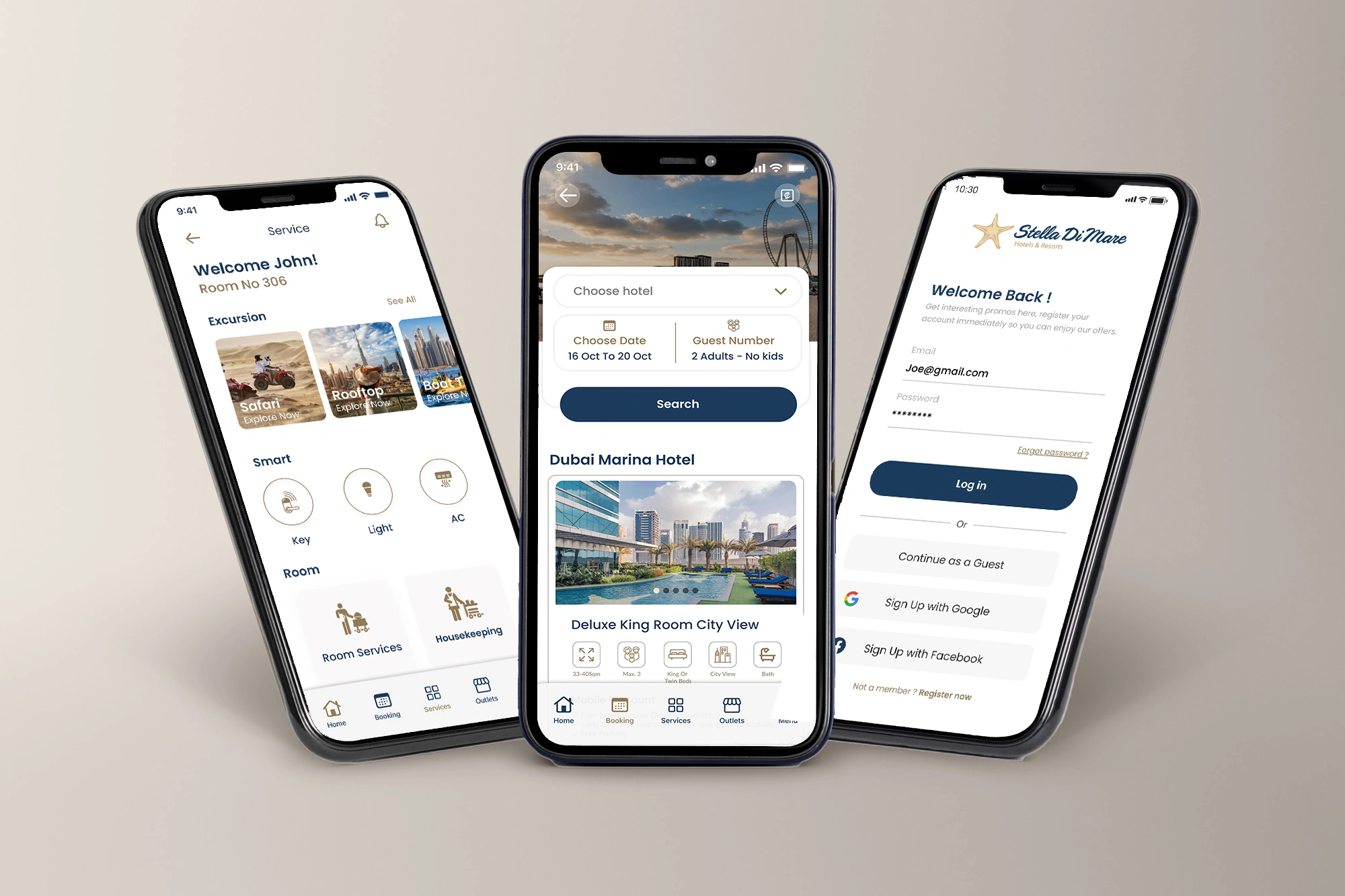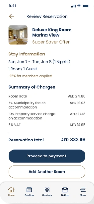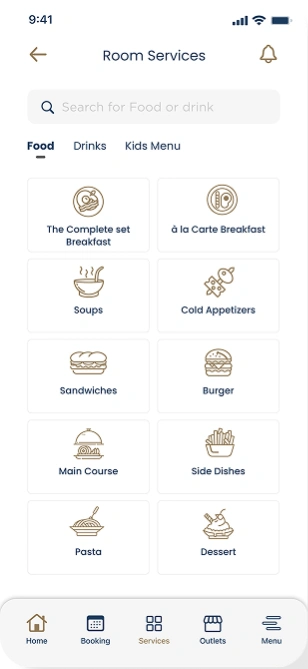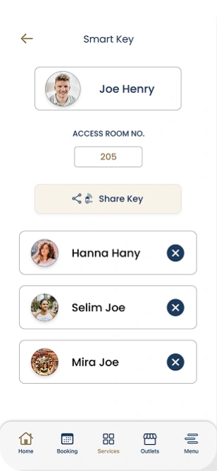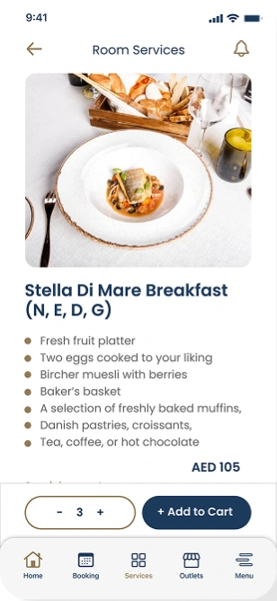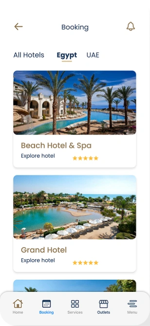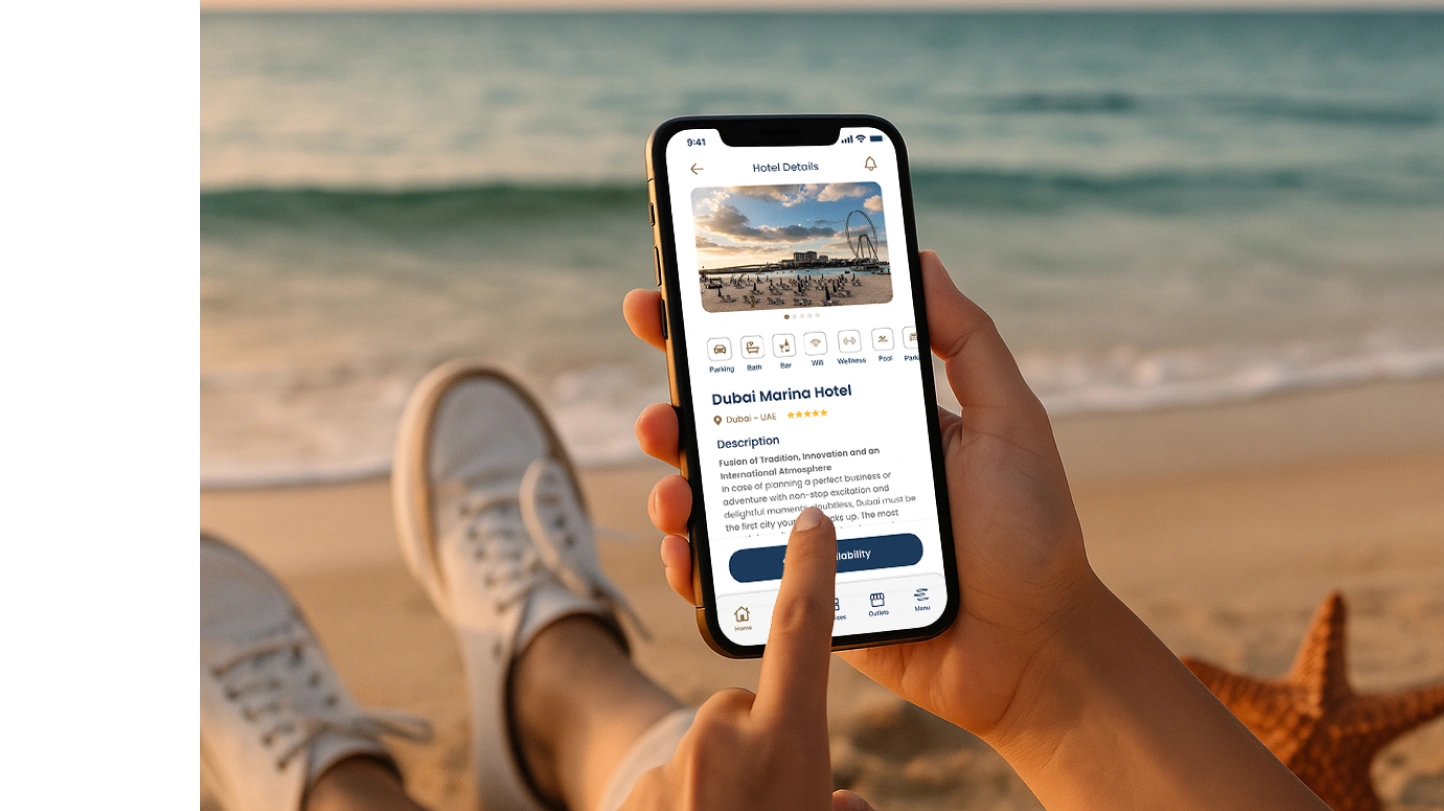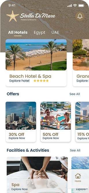 The custom-built mobile app was designed to empower guests with full control over their stay. Key features included smart room access via secure mobile keys; developed in partnership with Assa Abloy, as well as digital service requests for housekeeping, room service, maintenance, and more. Guests could also book excursions, request car charging, or reserve at on-site outlets, all from their phones. The interface combined luxury aesthetics with functional design, providing a seamless experience that reflected the elegance and modernity of the Stella di Mare brand.