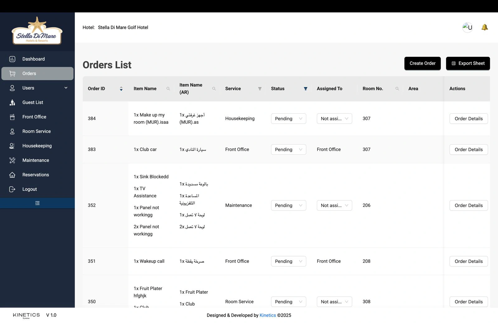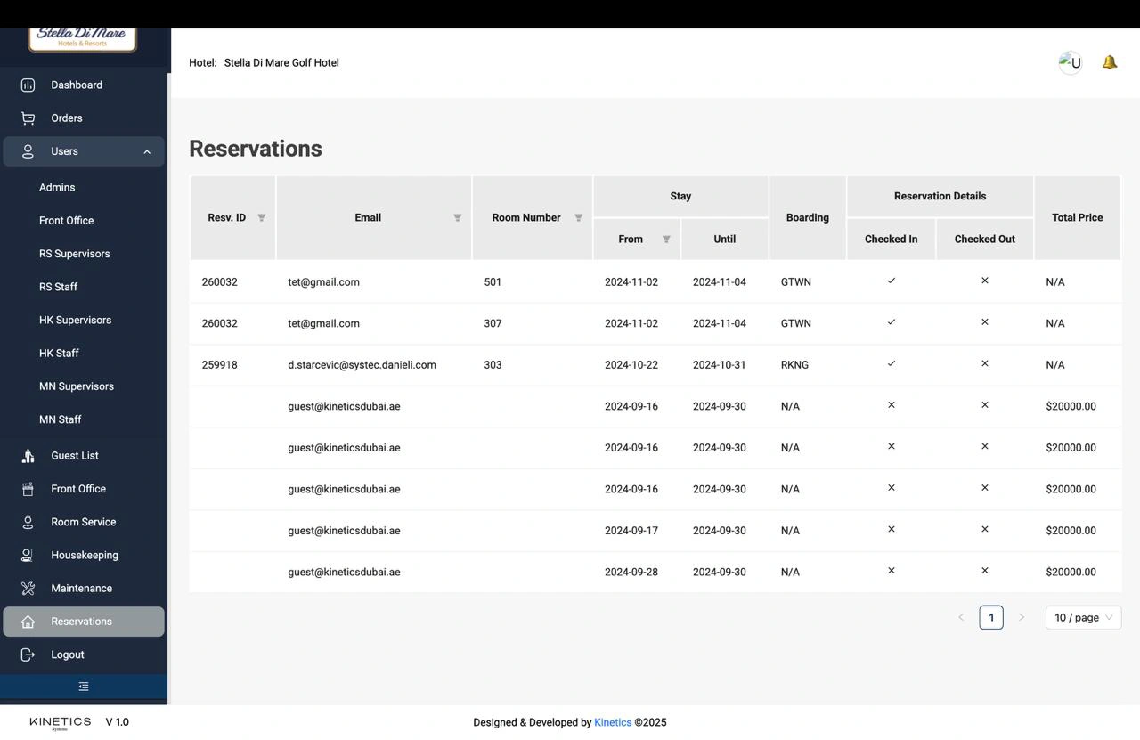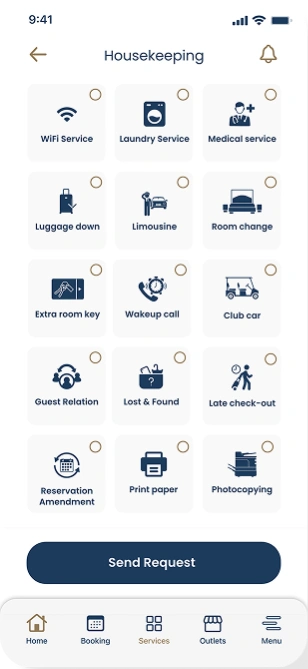 To complement the mobile app, we developed a robust backend dashboard that gave hotel staff real-time visibility into all service requests and guest activity. From room service and maintenance to outlet reservations and car charging, every touchpoint was monitored and tracked through a central interface. This data-driven platform allowed operations teams to assign tasks, monitor fulfillment, and analyze trends, ultimately improving service delivery and operational efficiency across departments.