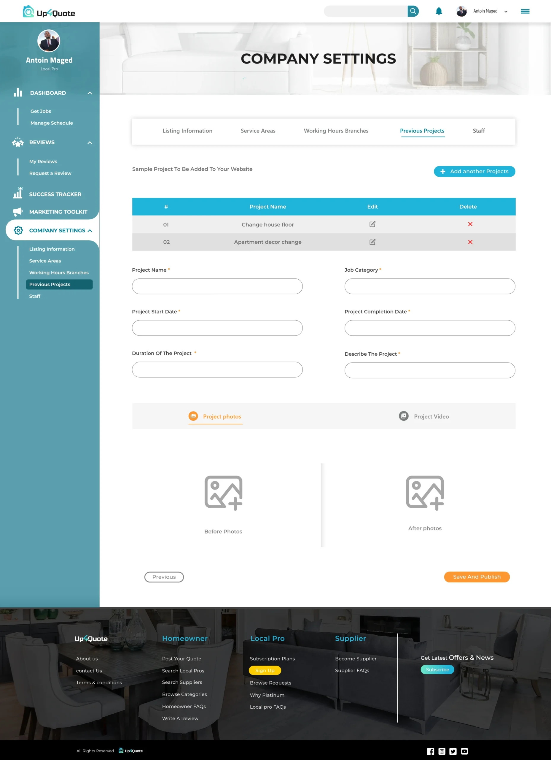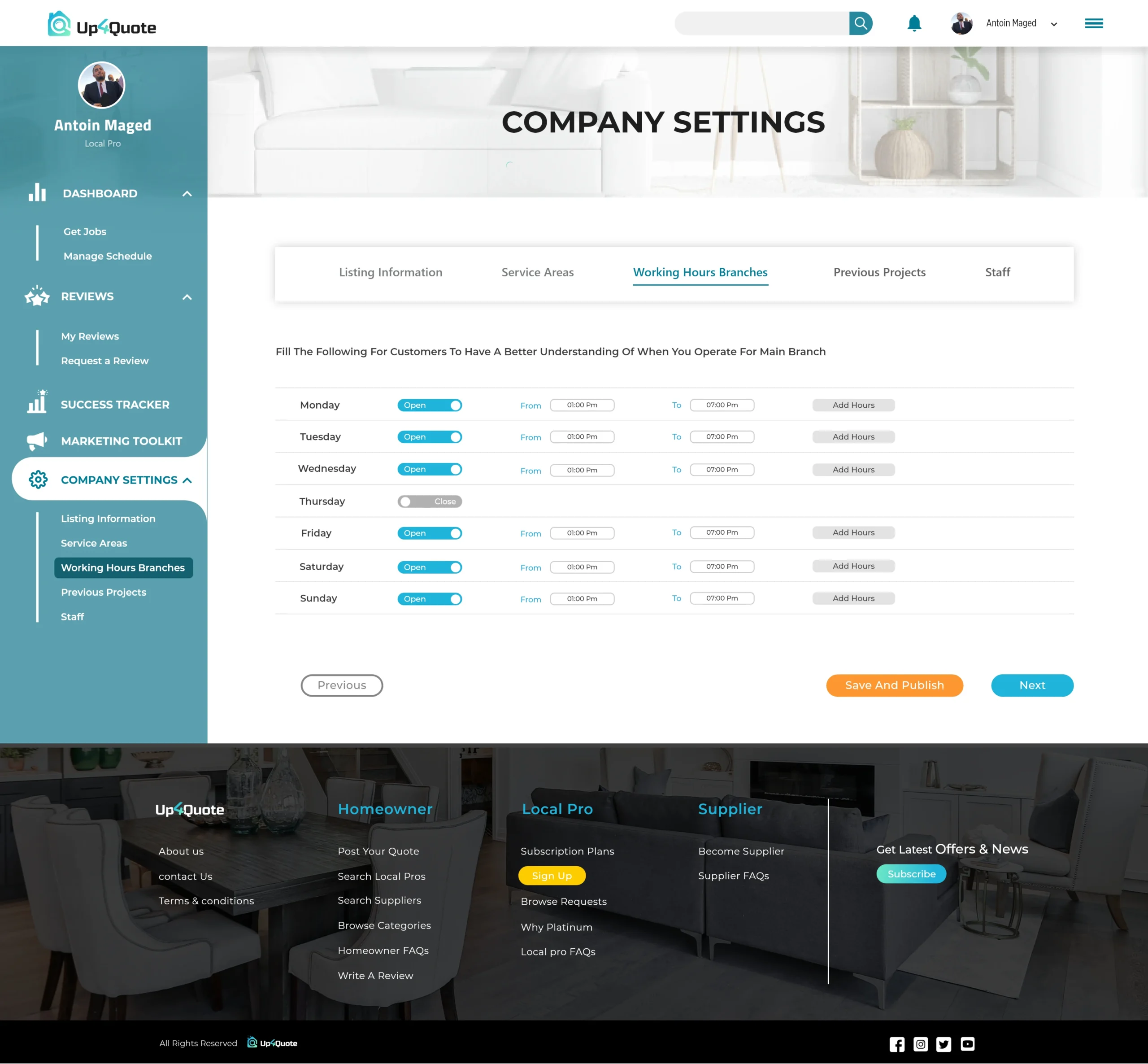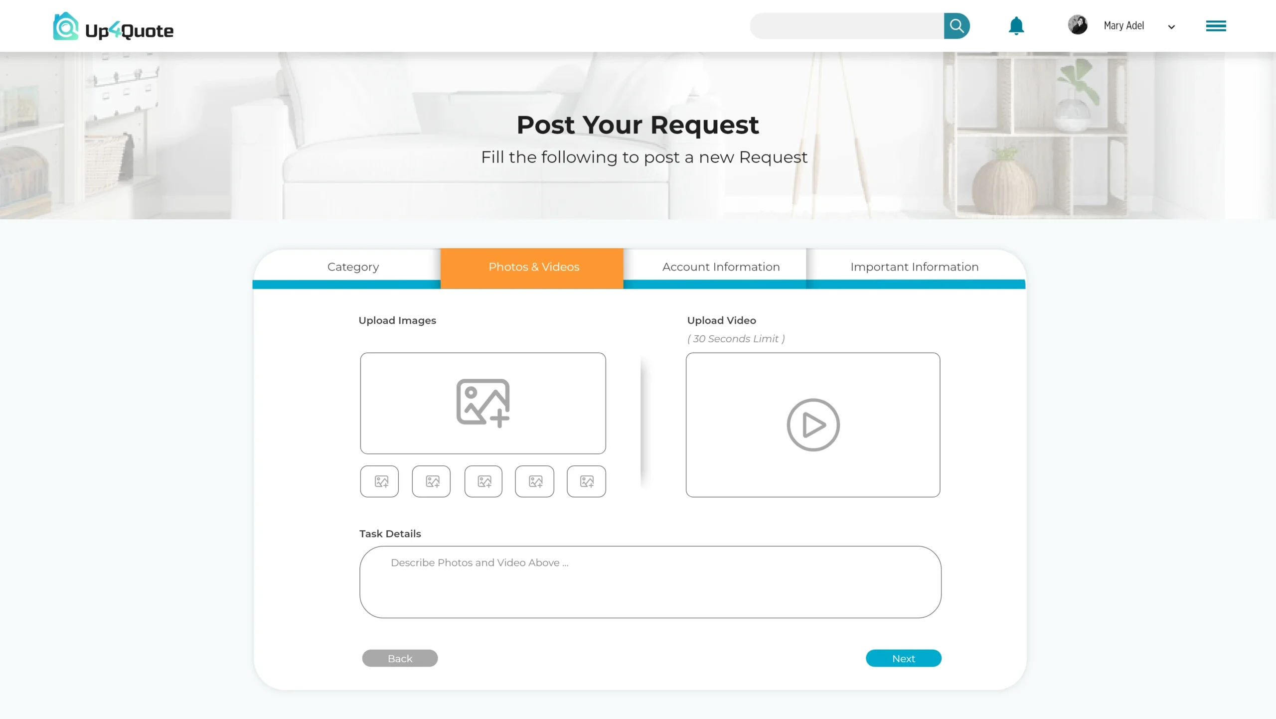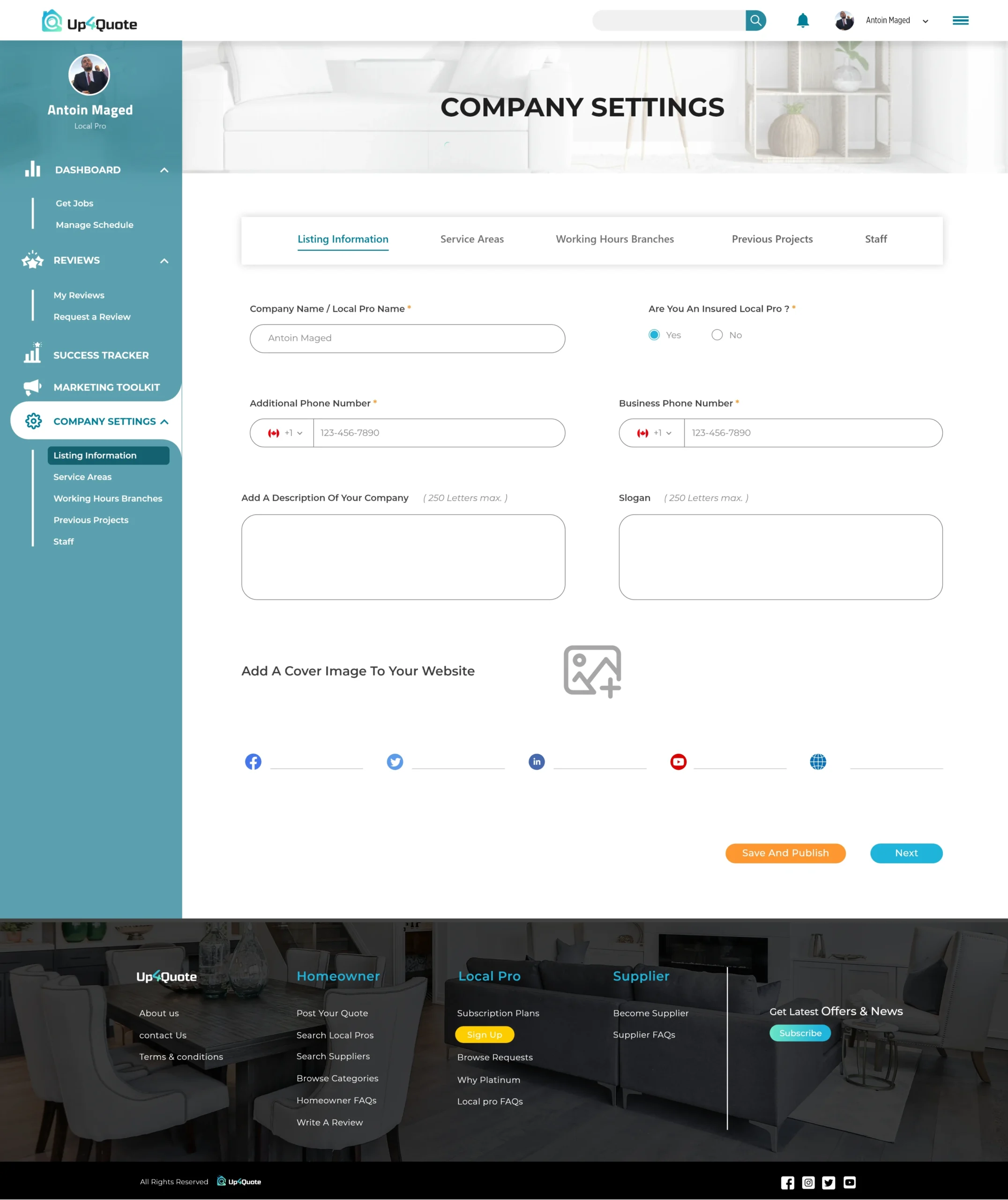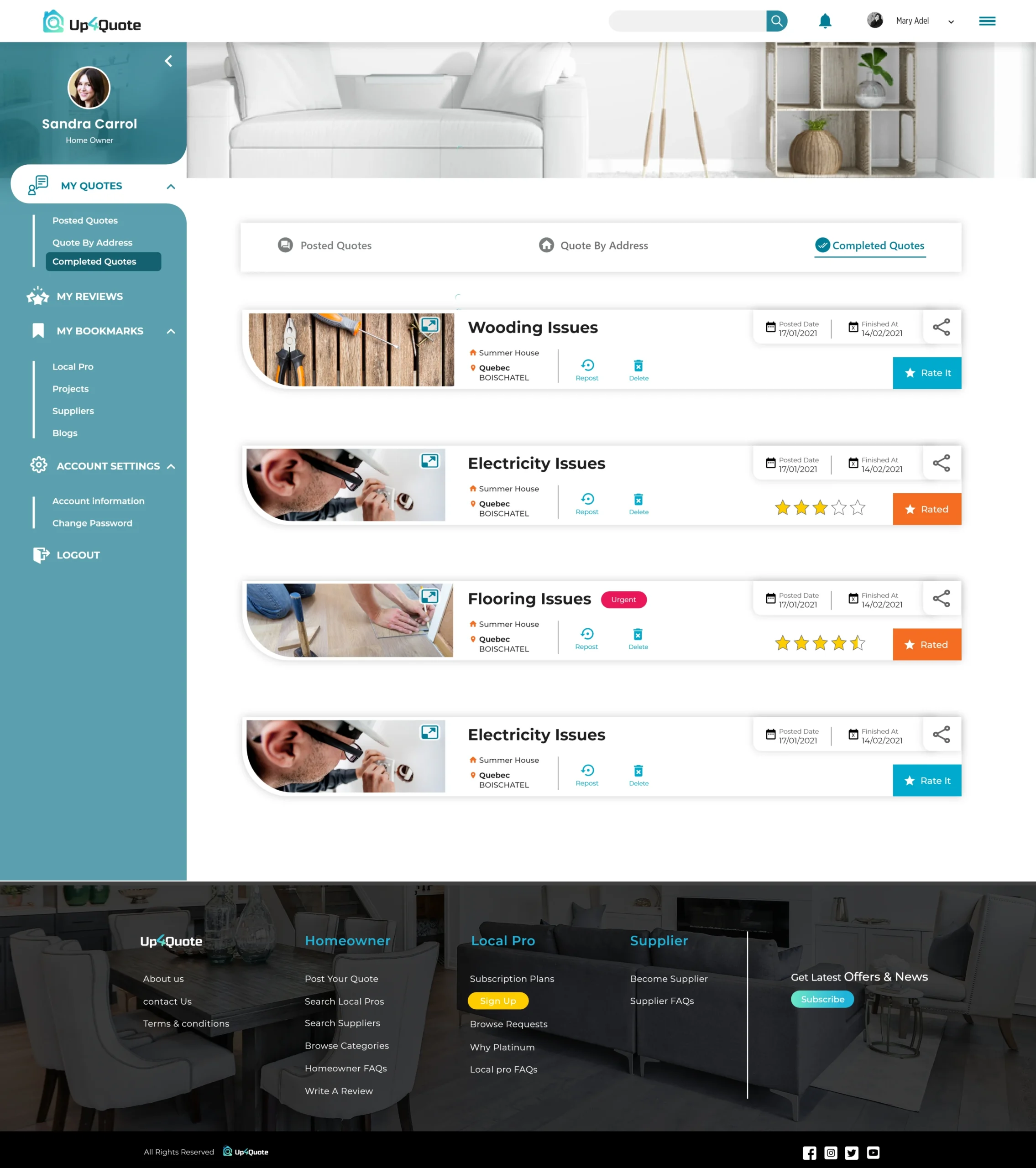 The Up 4 Quote website was developed as a clean, intuitive service marketplace where users can easily report household problems and receive quick support from nearby professionals. Homeowners are guided through a step-by-step form to submit their service needs, while local pros receive requests in real time and can schedule appointments directly through the platform. The user journey was carefully designed to reduce friction, build trust, and enable fast resolutions, making the platform a practical go-to for home services across Canada.