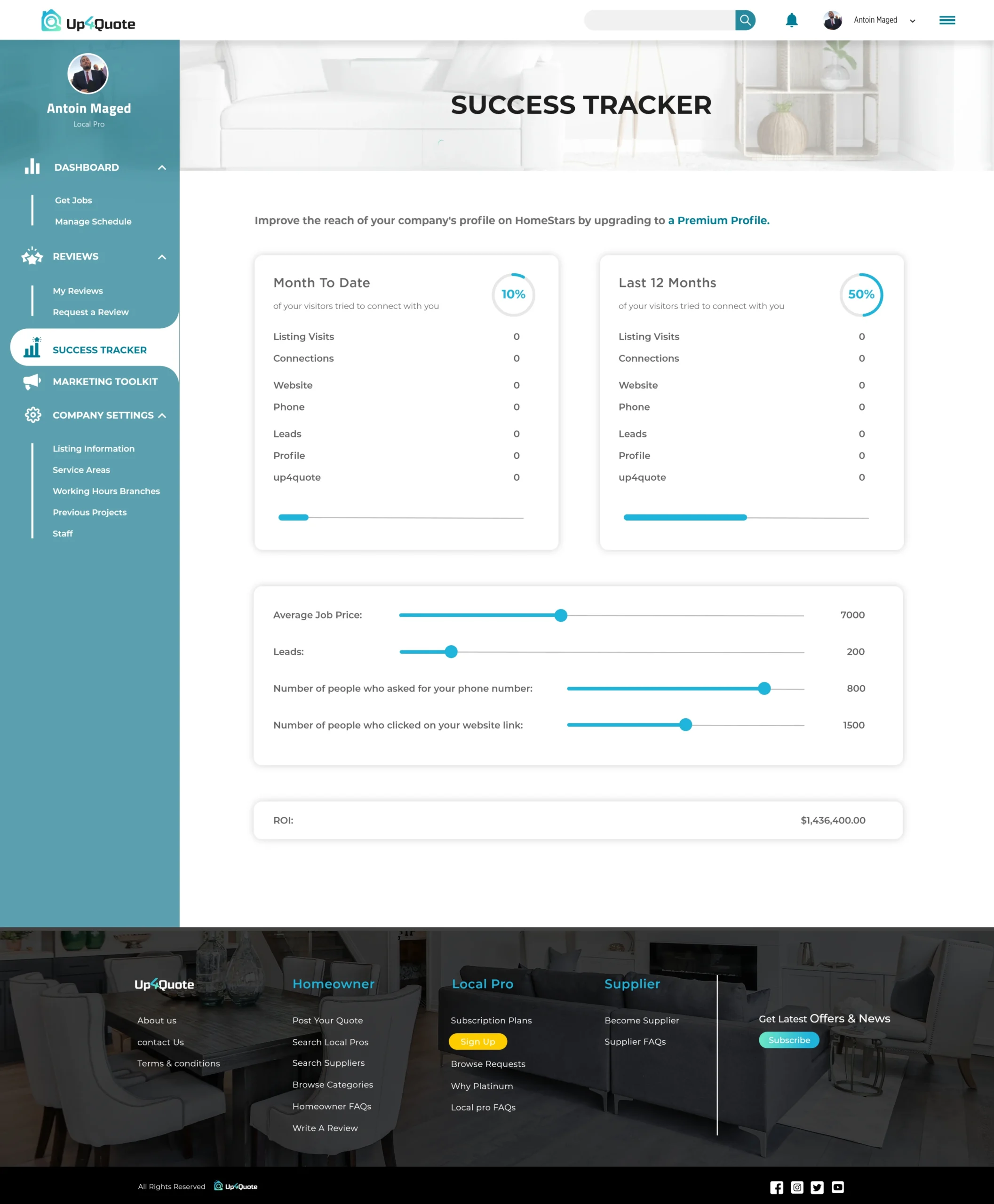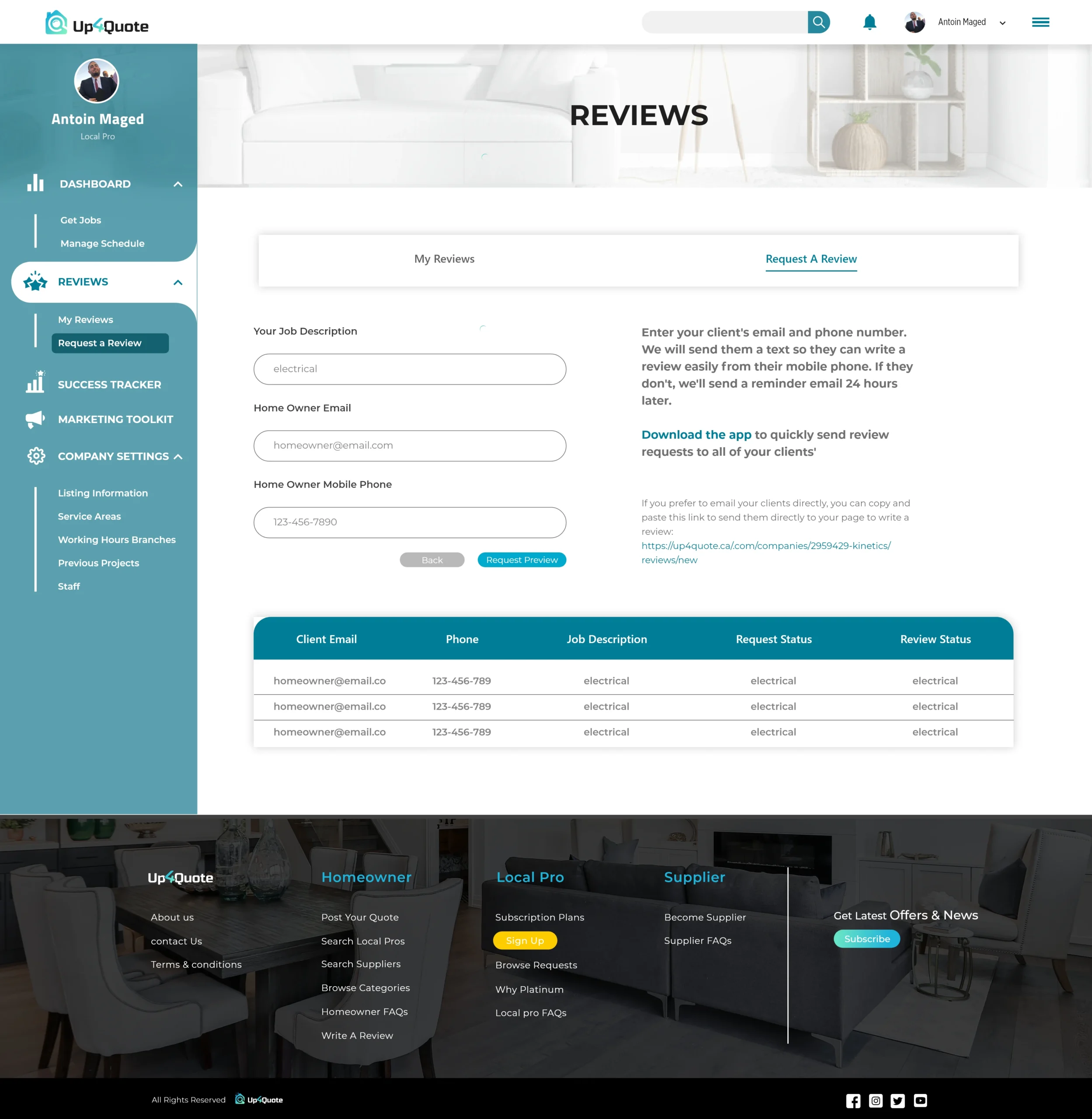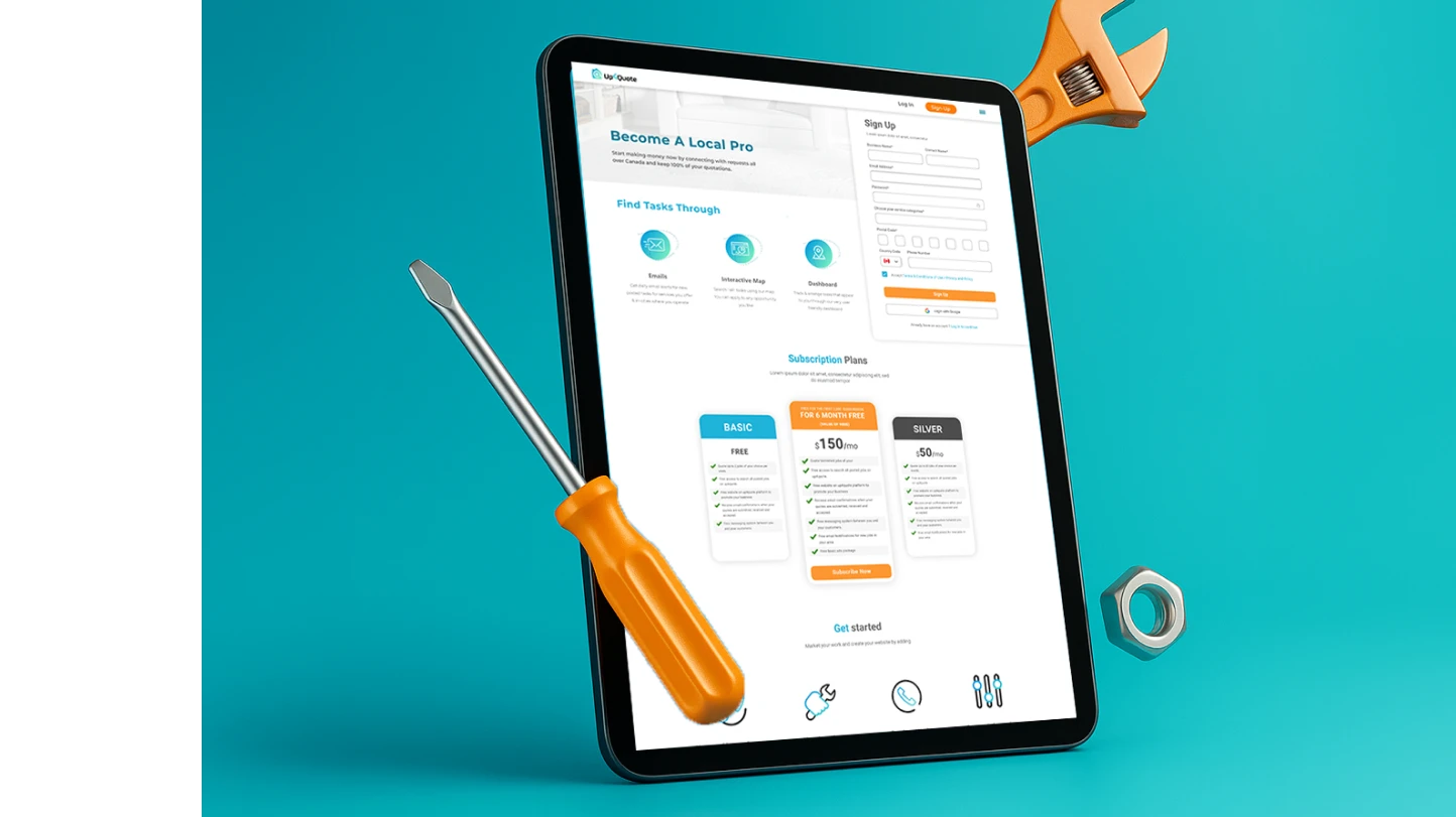 Kinetics partnered with Up 4 Quote to create a streamlined digital solution that connects Canadian homeowners with local service professionals. The goal was to simplify the process of finding reliable help for everyday home issues; from repairs to maintenance; by building a platform that brings trust, speed, and convenience into one experience. By designing a system that supports both the homeowner and the service provider, we helped Up 4 Quote fill a crucial gap in the home services market.
